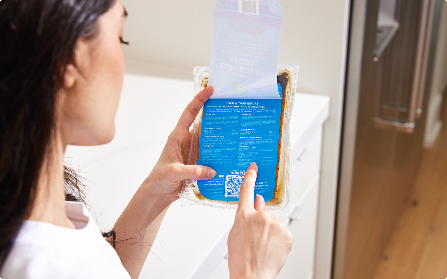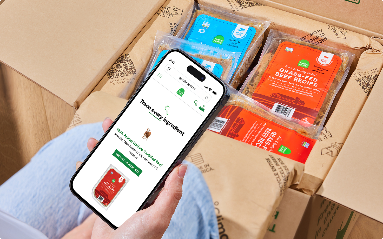 We back up terms like ‘human-grade ingredients’ with a 100% traceable ingredient list so you know exactly what’s in your dog’s bowl, where it came from, and why. Simply scan the recipe’s QR code for complete sourcing information – and 100% confidence in what exactly is in every bite.