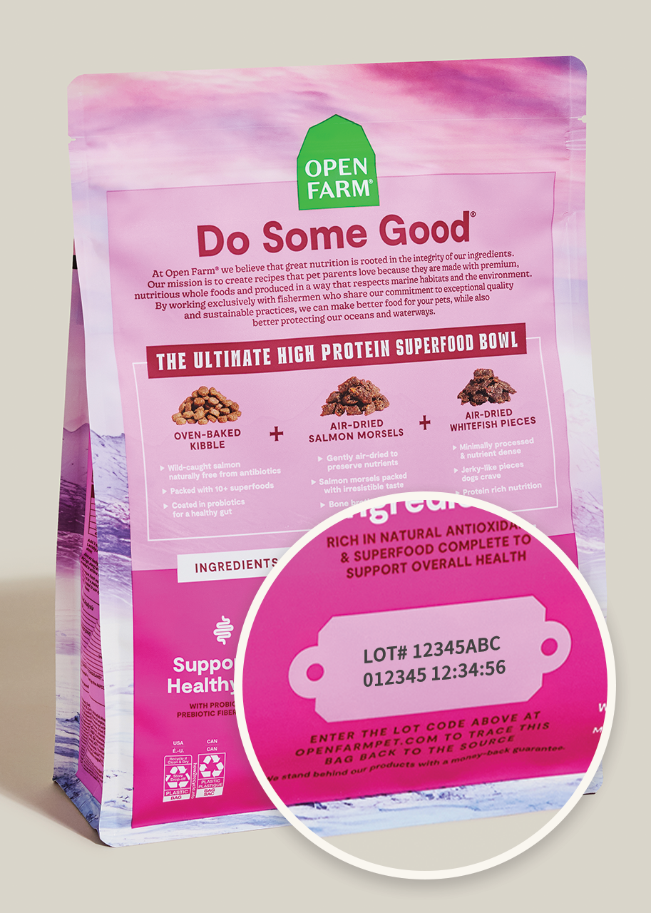 Our 30-day satisfaction guarantee covers the full recommended transition period from your pet’s old food to their Open Farm new recipe, plus plenty of extra time to reach out to us to initiate a return if needed. If you or your pet isn’t completely satisfied for any reason, we’ll gladly provide a full refund or exchange for recipes purchased on OpenFarmpet.com within 30 days of delivery.