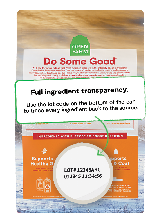 Our 30-day satisfaction guarantee covers the full recommended transition period from your pet’s old food to their Open Farm new recipe, plus plenty of extra time to reach out to us to initiate a return if needed. If you or your pet aren’t completely satisfied for any reason, we’ll gladly provide a full refund or exchange for recipes purchased on OpenFarm.com within 30 days of delivery.