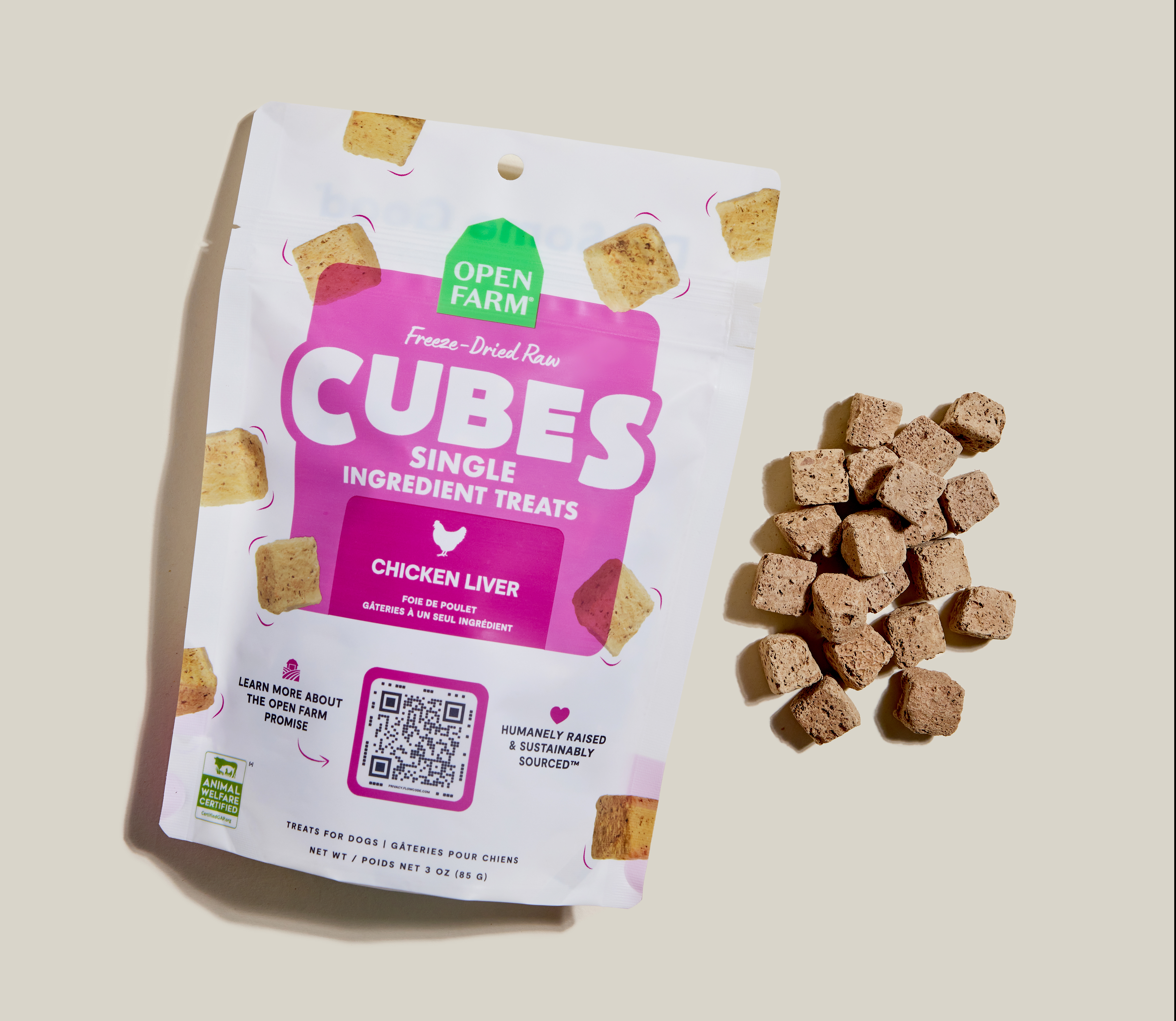 Our chicken liver cube treats are made with one single ingredient – nutrient-rich, humanely-raised chicken liver! Freeze dried to preserve nutrition and flavor, these simple protein-packed treats deliver an incredible taste your dog will crave and are perfect for dogs with sensitivities. Our ethically sourced ingredients are 100% traceable, crafted without corn, wheat, soy, or artificial flavors, preservatives or additives for total pet parent peace of mind.