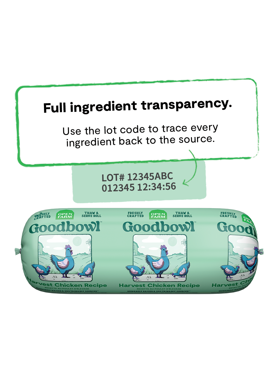 We also believe that every ingredient your pet eats should be accounted for, that's why every ingredient in our Freshly Crafted recipes is 100% traceable. You can trace every ingredient to its geographic origin, see safety test results, and more. We know you're obsessed about your pet, so we obsessed about transparency in the food they eat. That's the Open Farm difference.