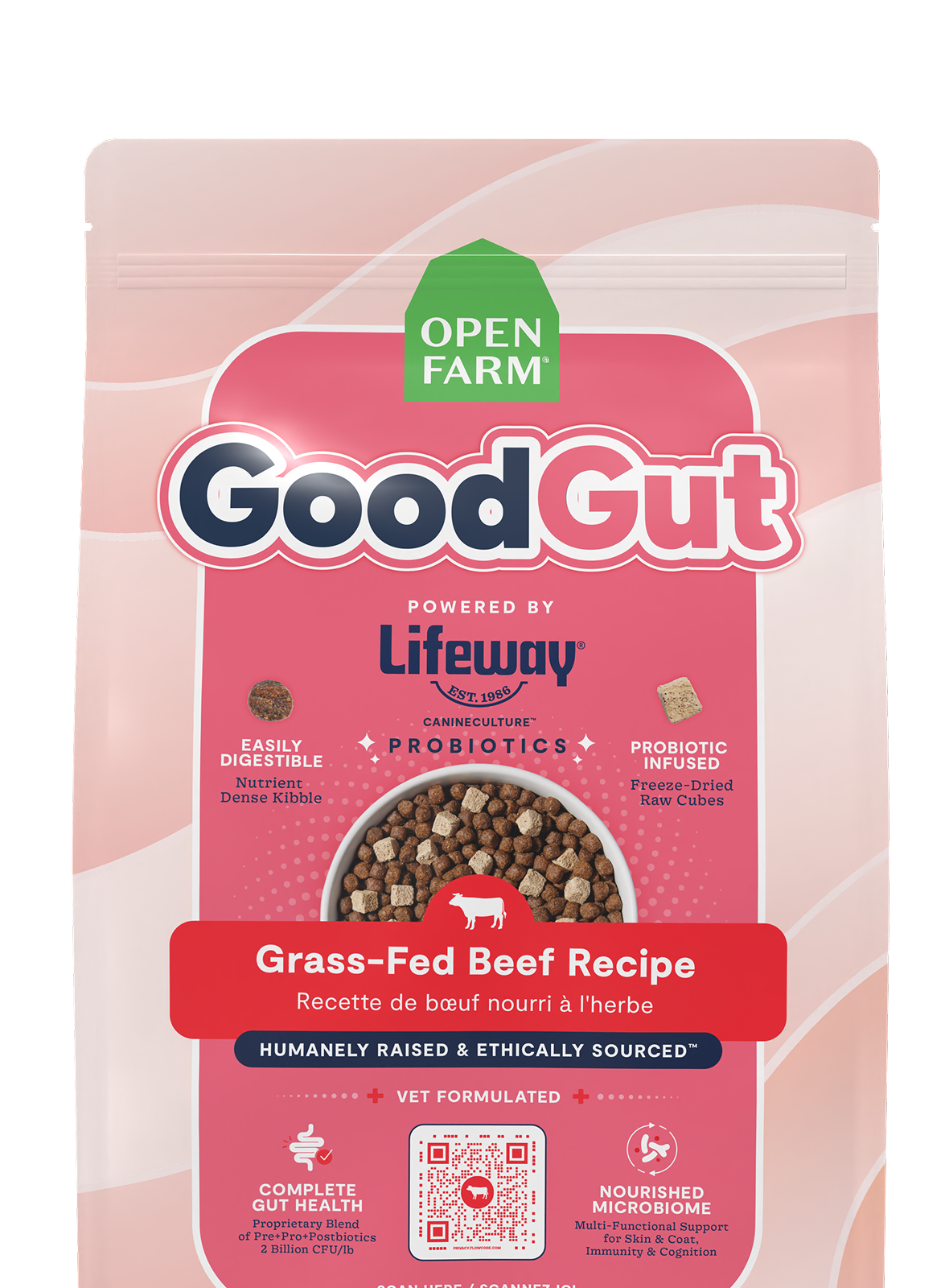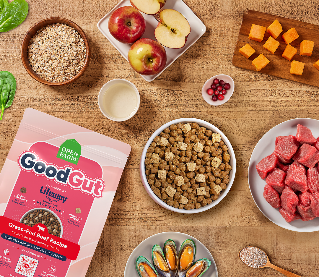 This vet-formulated recipe combines nutrient-dense kibble with freeze-dried raw cubes, powered by Lifeway™ probiotics delivering 2 billion CFUs per pound to support digestive function and a balanced gut microbiome. Crafted with Certified Humane grass-fed beef, GoodGut is a poultry-free recipe designed as a foundational, everyday kibble that nourishes whole-body wellness from within.