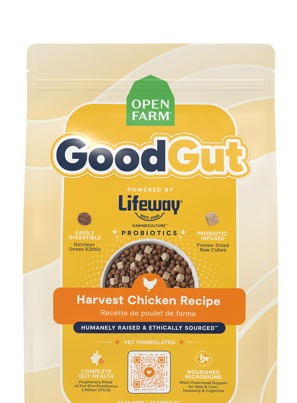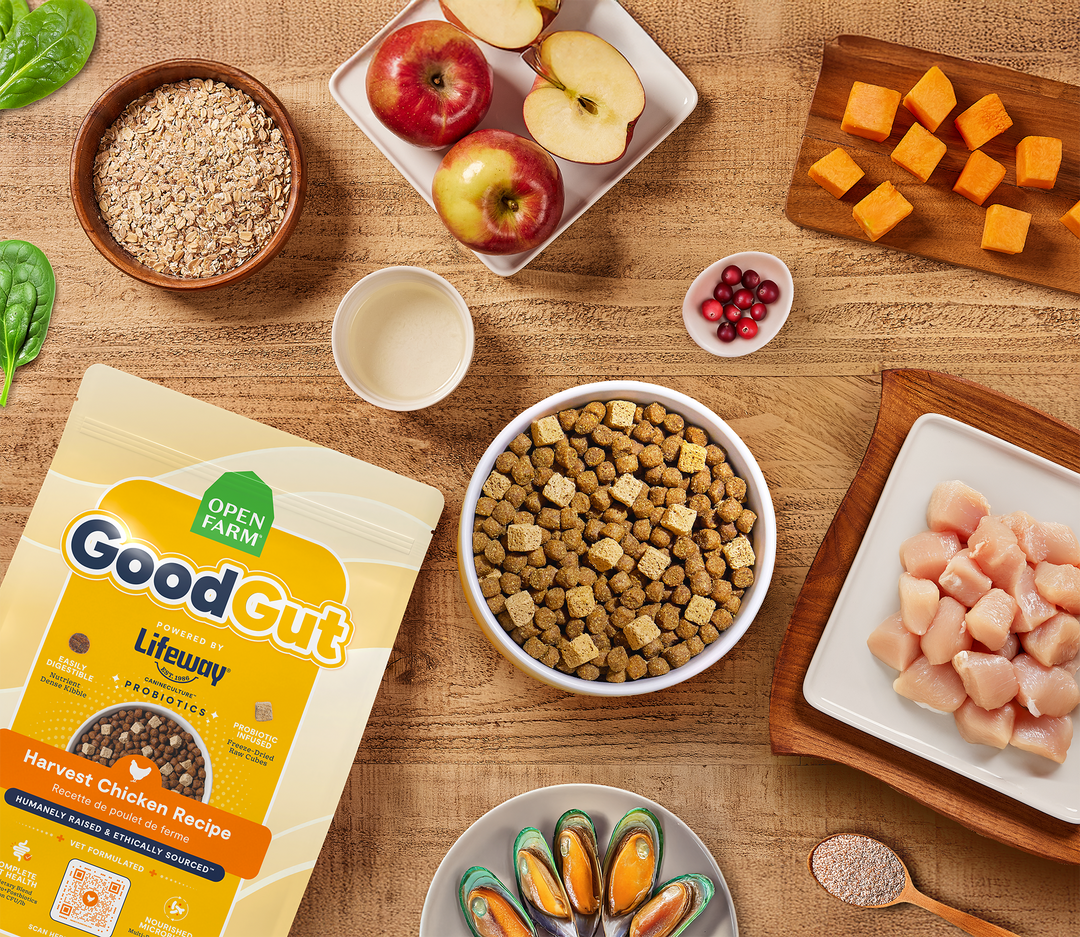 This vet-formulated recipe combines nutrient-dense kibble with freeze-dried raw cubes, powered by Lifeway™ probiotics delivering 2 billion CFUs per pound to support digestive function and a balanced gut microbiome. Crafted with humanely-raised chicken, GoodGut is designed as a foundational, everyday kibble that nourishes whole-body wellness from within.
