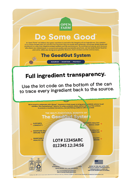 Our 30-day satisfaction guarantee covers the full recommended transition period from your pet’s old food to their Open Farm new recipe, plus plenty of extra time to reach out to us to initiate a return if needed. If you or your pet aren’t completely satisfied for any reason, we’ll gladly provide a full refund or exchange for recipes purchased on OpenFarm.com within 30 days of delivery.