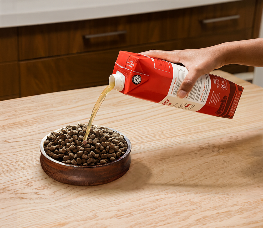 Pet parents often add bone broth on top of both kibble combined with another topper like wet food or freeze dried raw as the finishing touch to their bowl! By combining multiple sources of nutrition in one bowl, you both maximize nutrition while maximizing variety and excitement at mealtime! Our curated bundles feature bone both along with several other ways to boost your pup's bowl at mealtime (and save big!).
