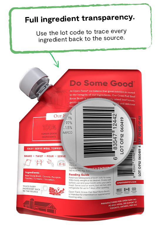 We're also committed to transparency and sharing everything pet parents need to know about what’s in their pet’s bowl. That’s why for every Open Farm recipe you will find the geographic origin of every ingredient, safety test results for each product, third-party certification details, and carbon emissions.