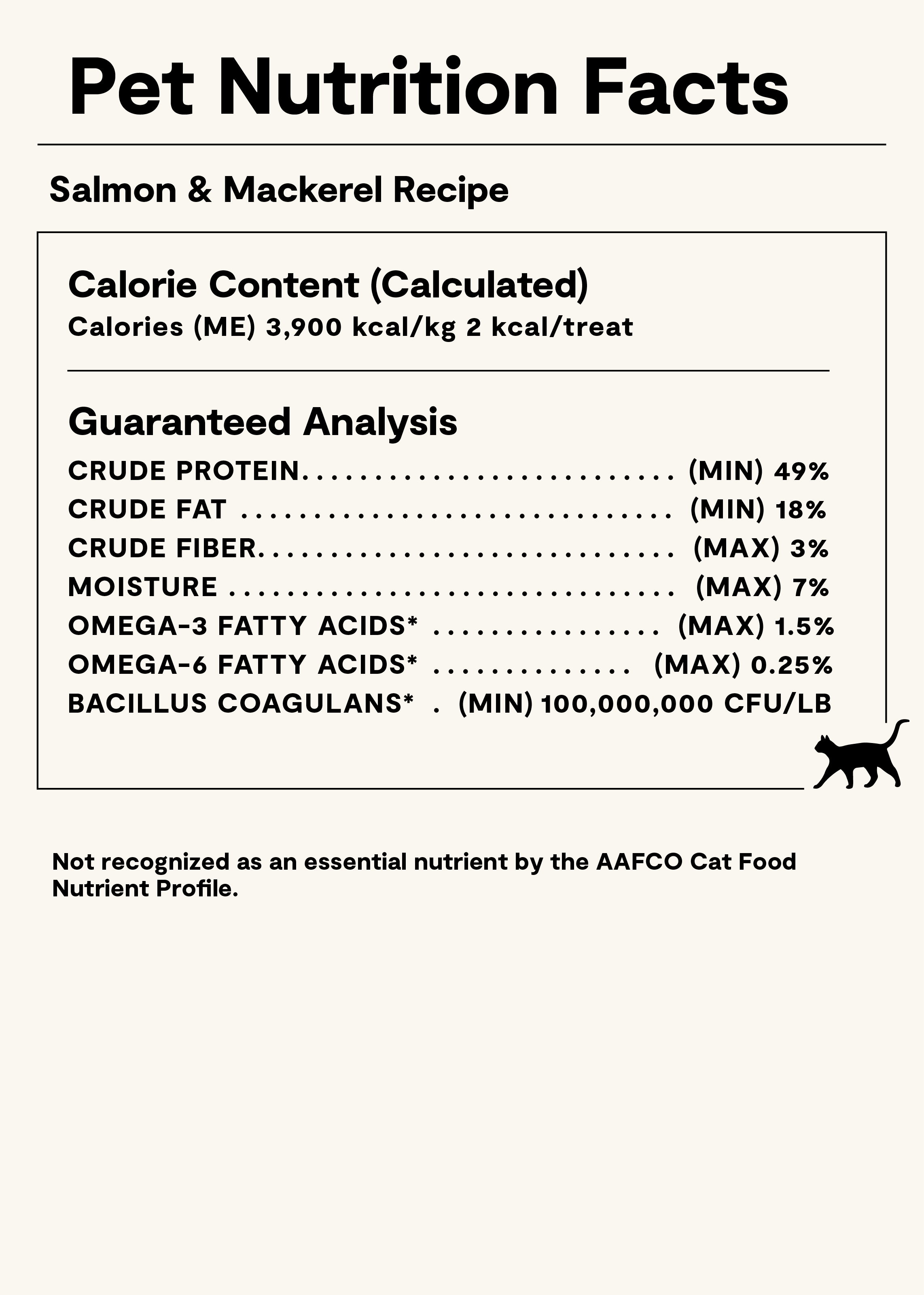 All Open Farm treats are intended for intermittent or supplemental feeding only. As much as we’d love to treat our cats all day, every day because the treats are so delicious, they're best enjoyed as a small part of your cat’s overall balanced diet.