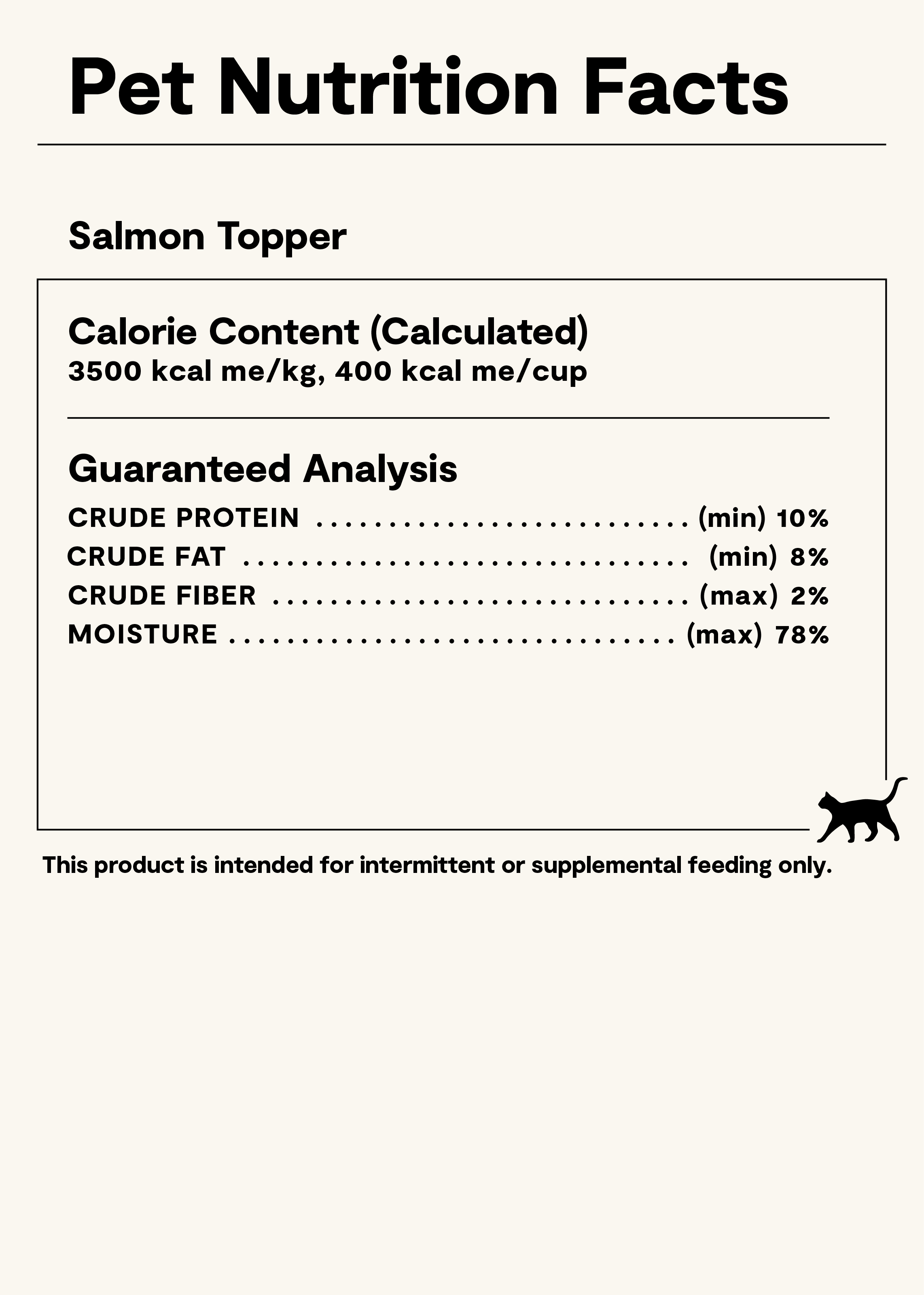 This product is intended for intermittent or supplemental feeding only Add 1 tablespoon as a topper on your cat’s current food. This pairs perfect on top of our Open Farm kibble.